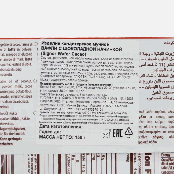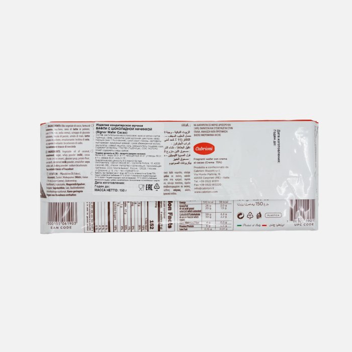 Вафли Кабриони с шоколадной начинкой пак 150г