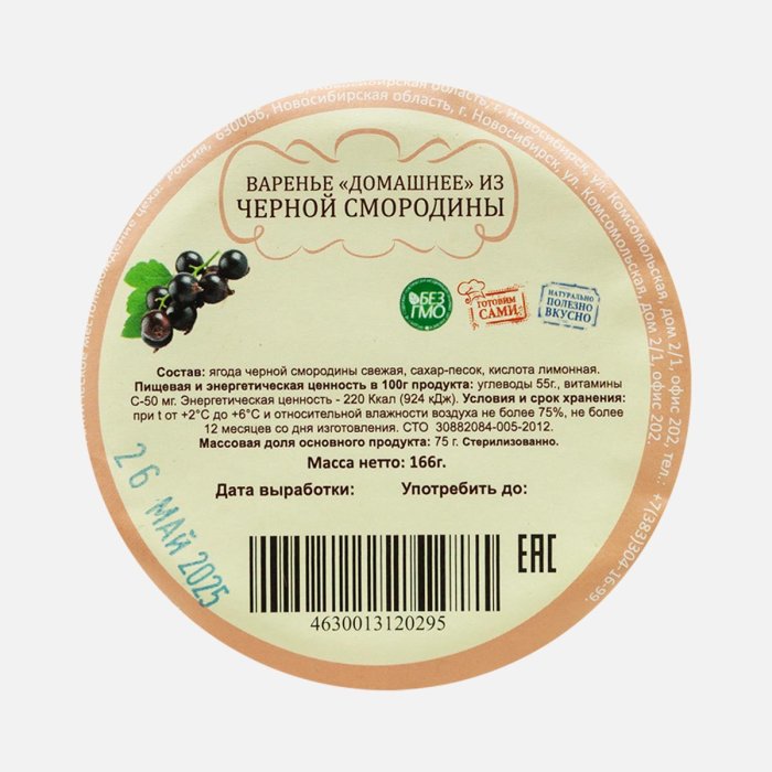 Ягода черной смородины свежая, сахар-песок, кислота лимонная. Витамины: С-50мг.