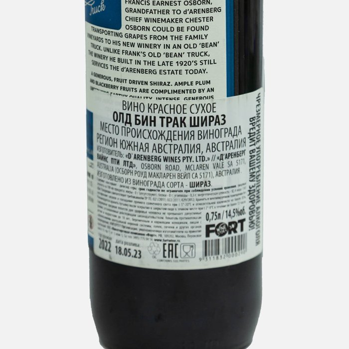 Вино Д'Аренберг Олд Бин Трак Шираз кр сух 14.5% ст/б 0,75л