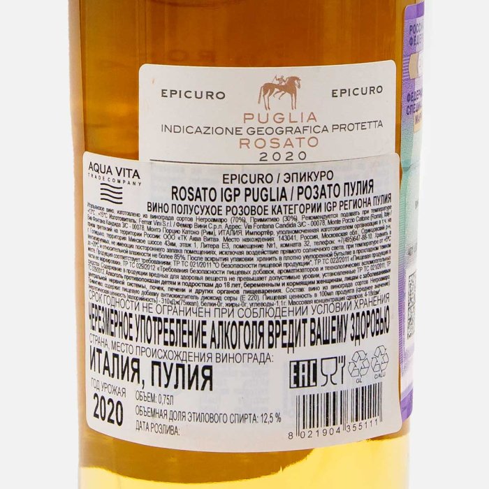 Вино Эпикуро Розато Пулия ИГП сорт роз п/сух 12.5% ст/б 0,75л