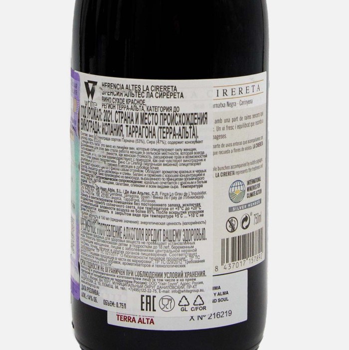 Вино Эренсия Альтес Ла Сиререта кр сух 10-14% ст/б 0,75л