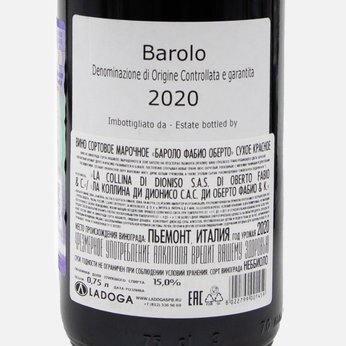 Вино Фабио Оберто Бароло кр сух 7.5-15% ст/б 0,75л