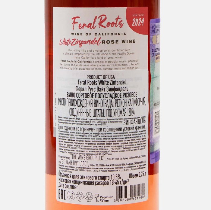 Вино Ферал Рутс Вайт Зинфандель сорт роз п/сл 10.5% ст/б 0,75л