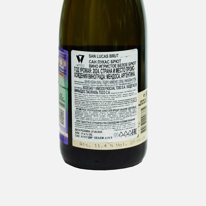 Вино игристое Сан Лукас Брют бел брют 9.9-11.4% ст/б 0,75л