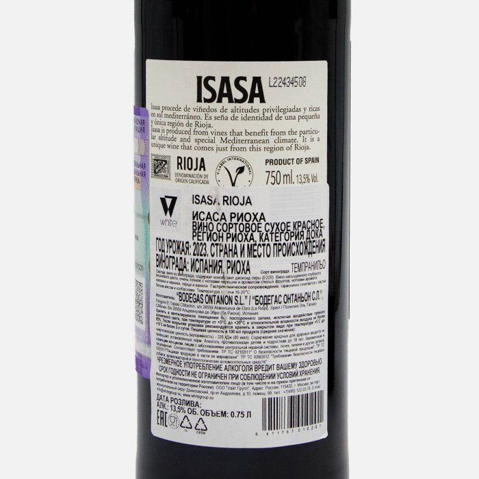 Вино Исаса Риоха ДОКа сорт кр сух 8-13.5% ст/б 0,75л