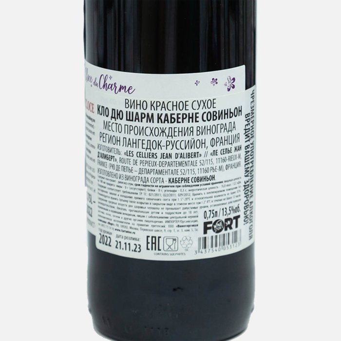 Вино Кло дю Шарм Каберне Совиньон кр сух 13.5% ст/б 0,75л