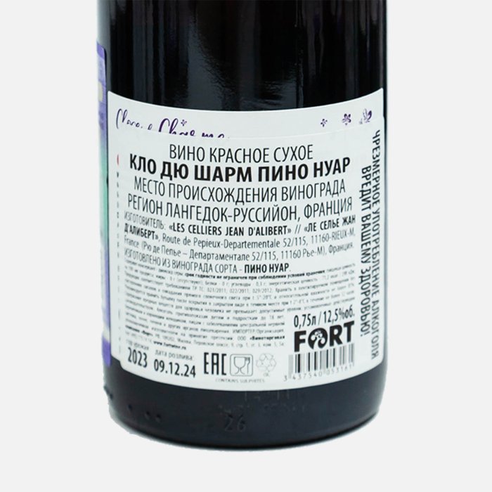 Вино Кло дю Шарм Пино Нуар кр сух 12.5% ст/б 0,75л