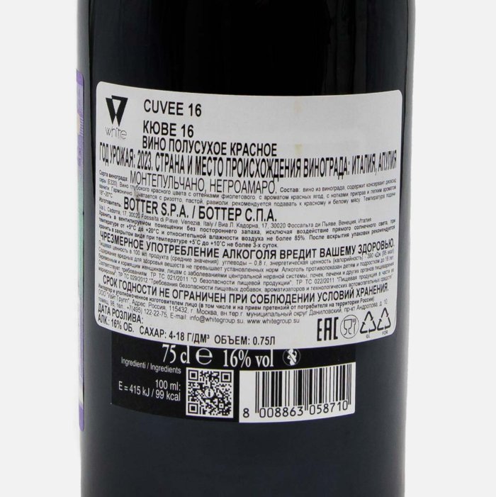 Вино Кюве 16 кр п/сух 8.5-16% ст/б 0,75л