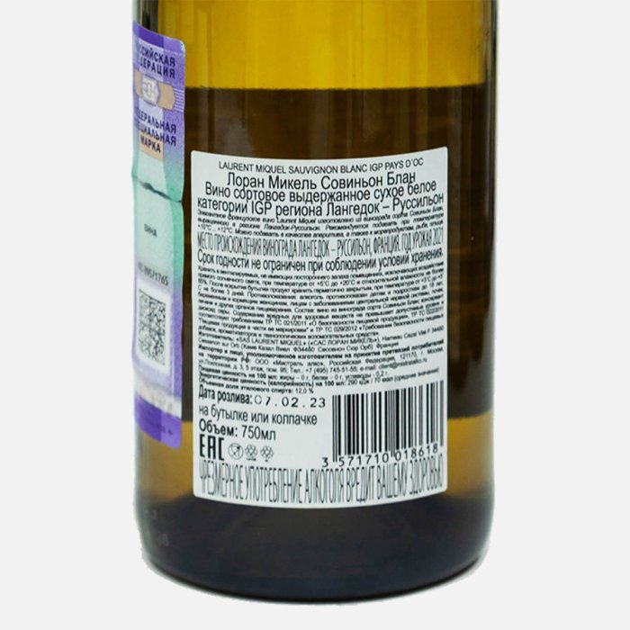 Вино Лоран Микель Совиньон Блан ИГП бел сух 8.5-12% ст/б 0,75л