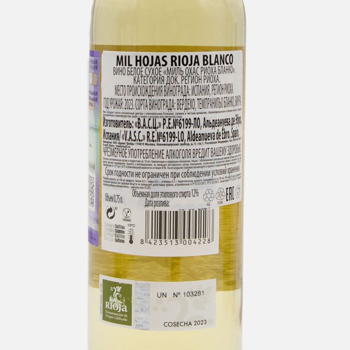 Вино Миль Охас Риоха Бланко ДОК бел сух 7.5-12% ст/б 0,75л