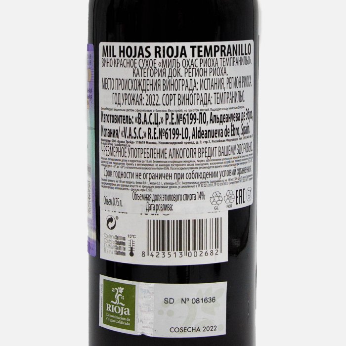 Вино Миль Охас Риоха Темпранильо ДОК кр сух 7.5-14% ст/б 0,75л