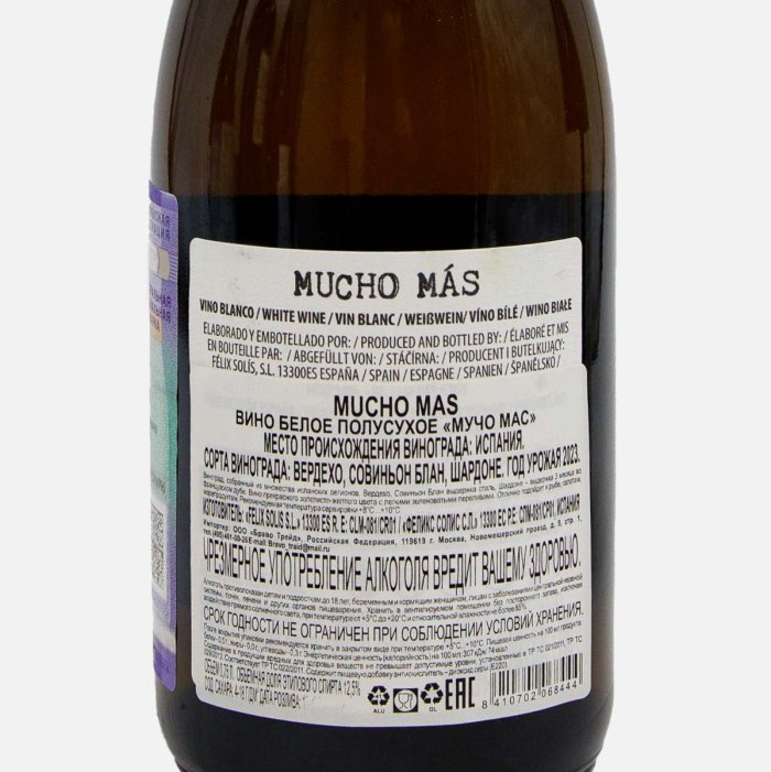 Вино Мучо Мас бел п/сух 12-12.5% ст/б 0,75л