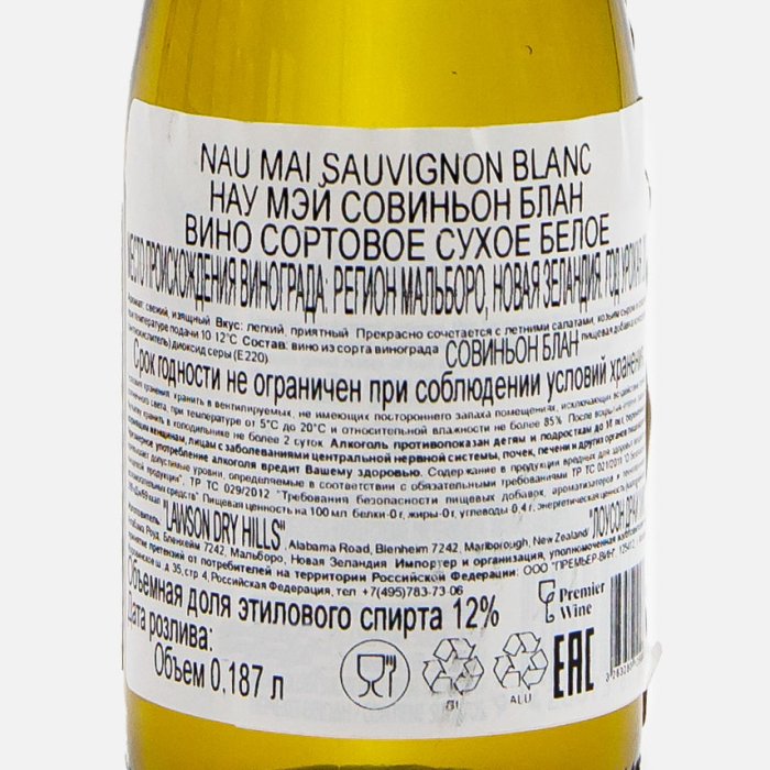 Вино Нау Мэй Совиньон Блан сорт бел сух 12% ст/б 0,187л