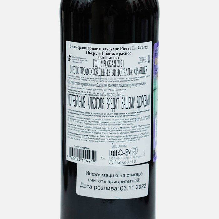 Вино Пьер ла Гранж орд кр п/сух 9-11% ст/б 0,75л