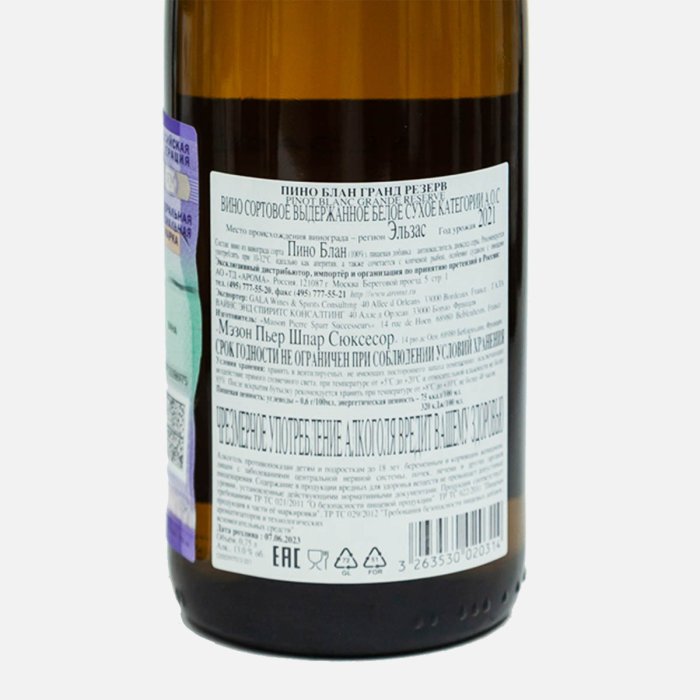 Вино Пьер Спарр Пино Блан Гранд Резерв АОС бел сух 10-12% ст/б0,75л