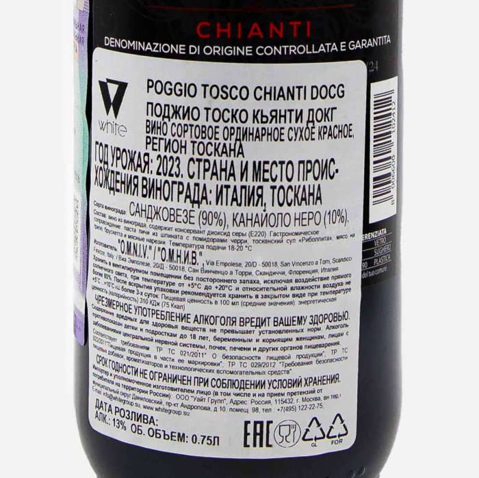 Вино Поджио Тоско Кьянти ДОКГ кр сух 10.5-13% ст/б 0,75л