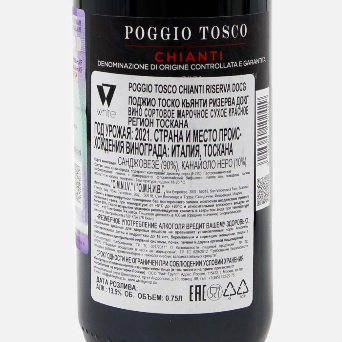 Вино Поджио Тоско Кьянти Ризерва ДОКГ кр сух 10.5-13.5% ст/б 0,75л