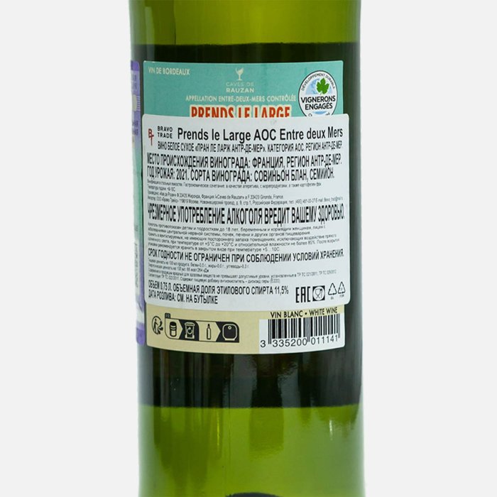 Вино Пран Ле Ларж Антр-Де-Мер бел сух 7.5-11.5% ст/б 0,75л