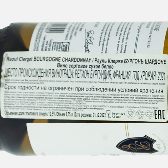 Вино Рауль Клерже Бургонь Шардоне сорт бел сух 12.5% ст/б 0,75л