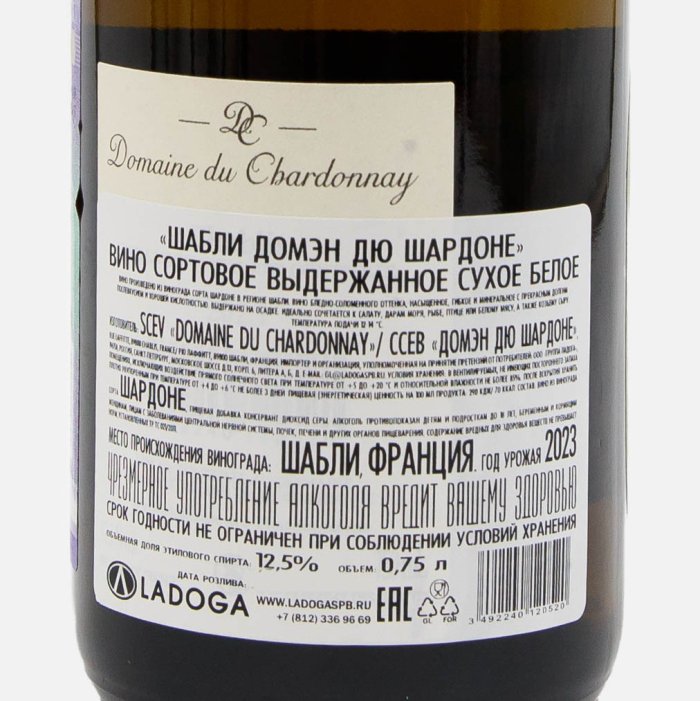 Вино Шабли Домэн дю Шардоне сорт выдер бел сух 7.5-12.5% ст/б 0,75л