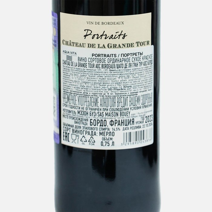 Вино Шато де ля Гран Тур Бордо Портреты кр сух 13.5% ст/б 0,75л