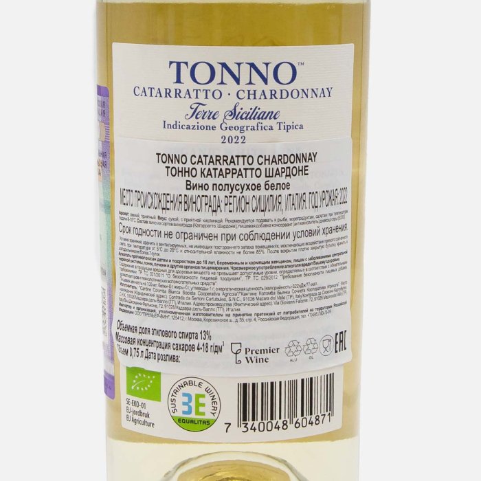 Вино Тонно Катарратто Шардоне бел п/сух 13% ст/б 0,75л