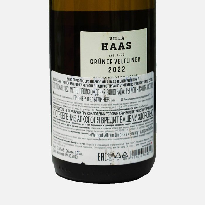 Вино Вилла Хаас Грюнер Велтлинер сорт орд бел сух7.5-12.5%ст/б 0,75л