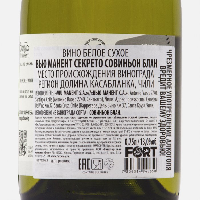 Вино Вью Манент Секрето Совиньон Блан бел сух 13-14% ст/б 0,75л