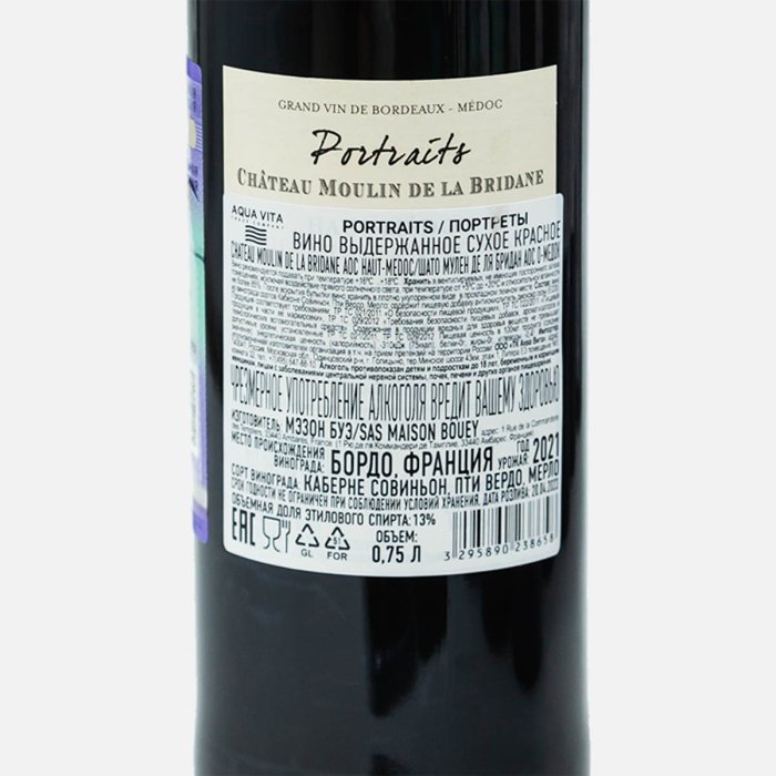 ВиноМэзонБуэШатоМулен деЛяБриданАОС О-МедокПортреты выд к/сух12-13%0,75