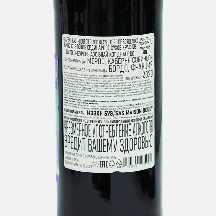 ВиноМэзонБуэШатоО-БурсьеАОС БлайКот деБордоПортреты сорт орд кр сух0,75