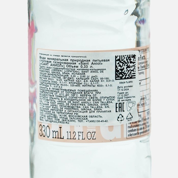 Вода Сант Аниол минеральная природная питьевая газ ст/б 0,33л