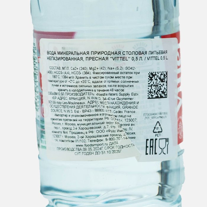 Вода Vittel в пластиковой бутылке формата 0,5 л выпускается в удобной мульти-упаковке по 6 бутылок. Маленькая бутылка воды Vittel идеально подходит для ношения в сумочке во время шоппинга, путешествий и многого другого.