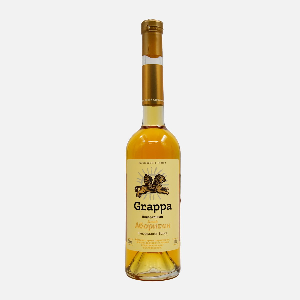 Водка Граппа выдержанДикий Абориген виноградная 40% ст/б 0,5л