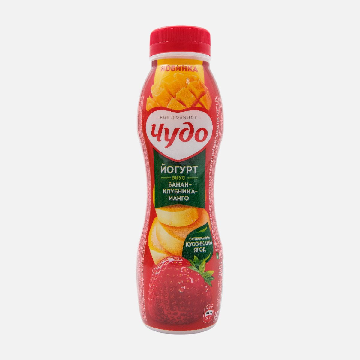 Йогурт Чудо Банан/Клубника/Манго питьевой 1.9% пл/б 260г