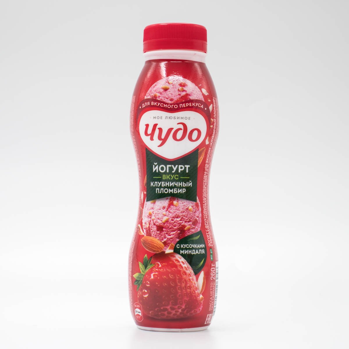 Йогурт Чудо Клубничный пломбир с миндалем питьевой 2% пл/б 260г