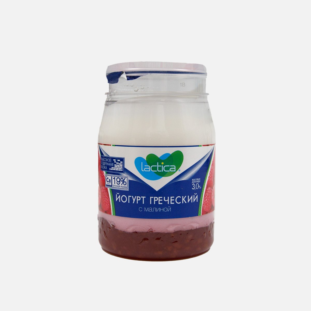 Йогурт Лактика Греческий с малиной двухслойный 3% пл/б 190г