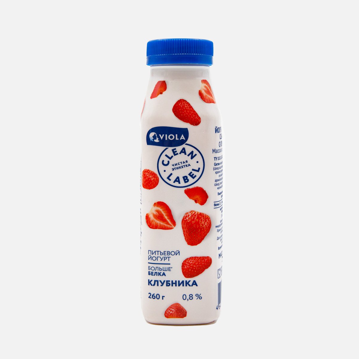 Йогурт Виола Клин Лейбл Клубника питьевой 0.8% пл/б 260г