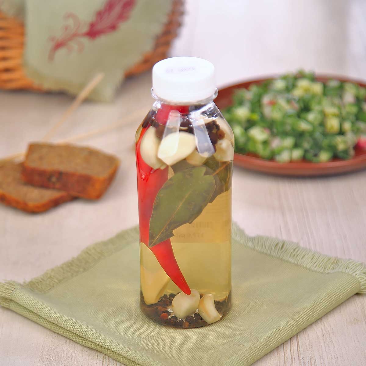 Уксус, чеснок, перец Жгучий (стручок), лавровый лист ветка, перец душистый горошком, перец черный горошек