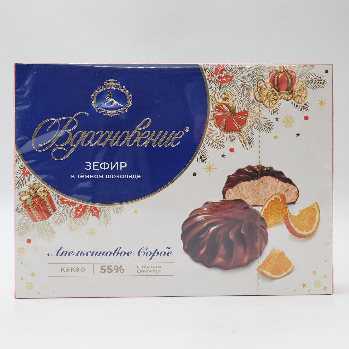 Зефир Вдохновение апельсиновое сорбе в темном шоколаде 245г