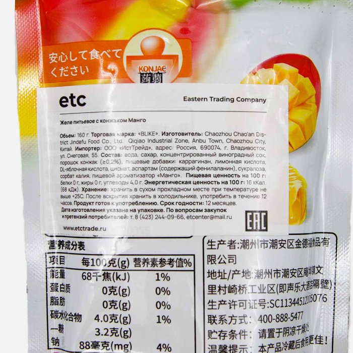 Желе Блайк с конжаком Манго питьевое дой/пак 160г
