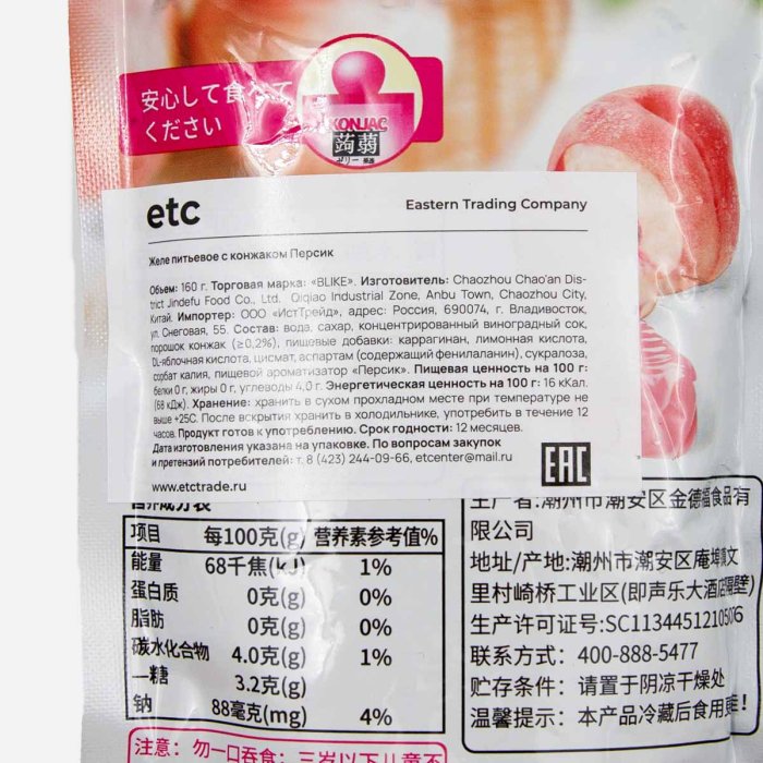 Желе Блайк с конжаком Персик питьевое дой/пак 160г
