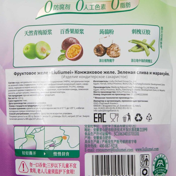 Желе Лиулиумей Зеленая слива и маракуйя фруктовое 120г