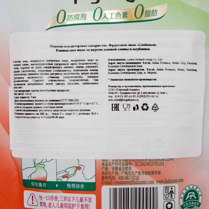 Желе Лиулумел Зеленая слива и клубника фруктовое 120г