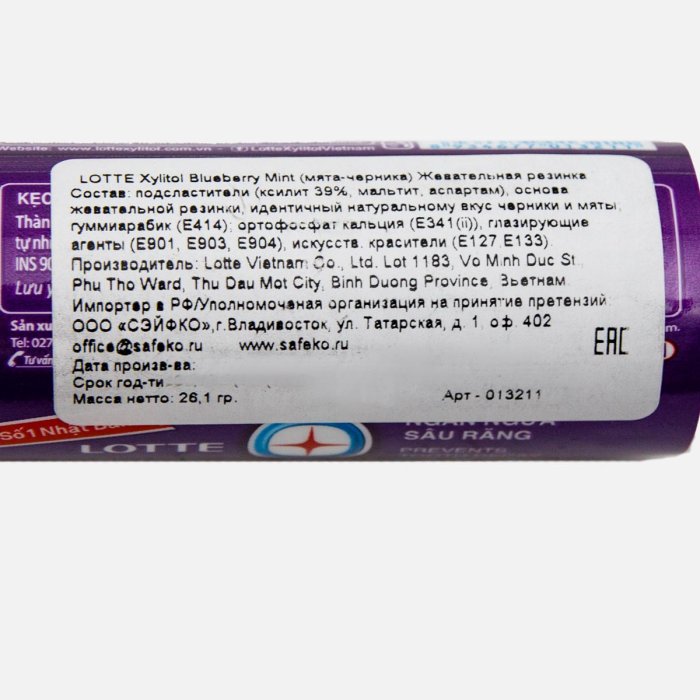 Жевательная резинка Лотте Ксилитол мята-черника 26,1г
