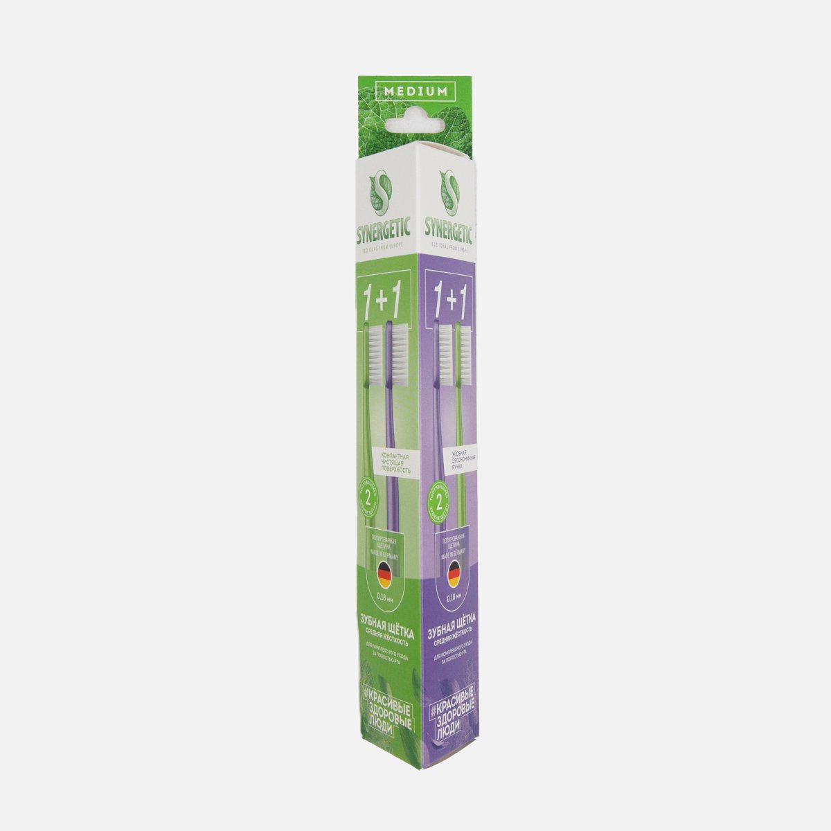 Зубная щетка Синергетик Эко дентал кар средняя фиол/зел 2шт